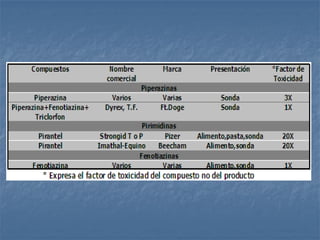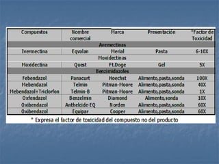 El documento habla sobre los principales parásitos que afectan a los caballos. Menciona que la aglomeración de animales favorece la transmisión de parásitos y que los eventos ecuestres pueden contribuir a su contagio. Describe los ciclos de vida, síntomas, tratamientos y formas de controlar los principales parásitos como los grandes y pequeños strongylus, oxyuris equi, paráscaris equorum y gasterophilus spp.
