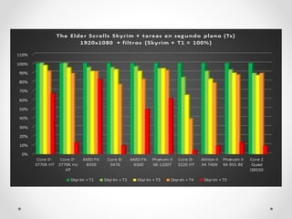 El documento describe las características y tecnologías de los microprocesadores multinúcleo. Explica conceptos como CPU, microprocesador, circuito integrado y microprocesador multinúcleo. También analiza las ventajas de los microprocesadores multinúcleo y las razones del constante aumento de velocidad de los microprocesadores. Además, describe sockets de CPU, niveles de cache, extensiones como MMX y SSE, el bus frontal y tecnologías empleadas por Intel y AMD.