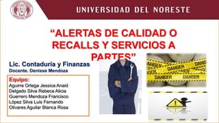 El documento habla sobre los recalls y servicios a partes. Explica que un recall es el retiro de un producto del mercado cuando viola leyes o estándares de calidad. Detalla los tipos de recalls, causas y proceso para llevarlos a cabo. También cubre el servicio a partes, que consiste en reparaciones o reemplazos de piezas, y el proceso PPAP para aprobar piezas y procesos de proveedores.