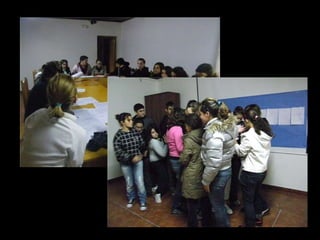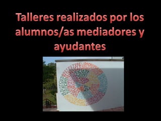 El documento describe diferentes roles de alumnos que ayudan a otros compañeros. Menciona al alumnado mediador que ayuda a resolver conflictos y forma al alumnado ayudante. También describe al alumnado ayudante que apoya a sus iguales, realiza mediaciones informales y detecta problemas de acoso. Finalmente, menciona al alumno acompañante que da la bienvenida a los nuevos alumnos y les ayuda a integrarse.