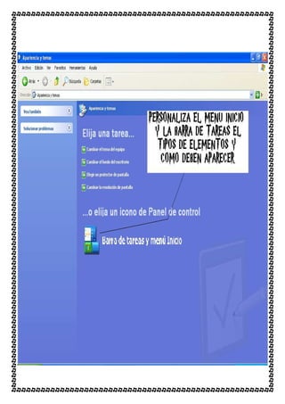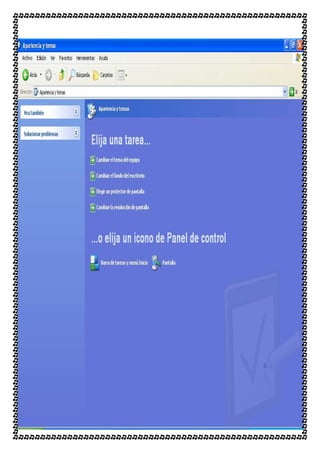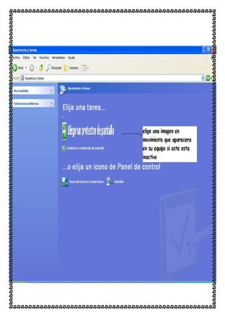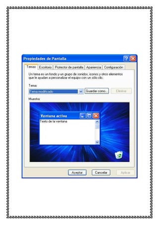 El documento describe diversas configuraciones y operaciones relacionadas con el equipo de cómputo, incluyendo la conexión a redes, administración de cuentas de usuario, y ajustes de audio y accesibilidad. También detalla los procesos de particionado y formateo de dispositivos de almacenamiento, así como características y tipos de medios de almacenamiento como USB, CD-ROM, y discos duros. Finalmente, se discute la función y componentes de los programas antivirus para proteger los sistemas de información.