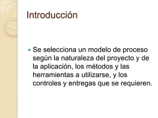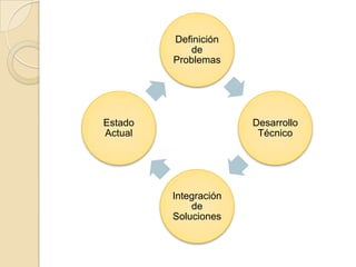 1) El documento presenta una metodología para el desarrollo de sistemas de información global que aborde las orientaciones de proceso, producto y técnicas. 2) Se comparan quince propuestas metodológicas existentes y se concluye que no cubren todos los aspectos requeridos por estos sistemas. 3) Se propone un marco de desarrollo que indique el proceso, técnicas y productos requeridos en cada fase para asegurar un producto de calidad.