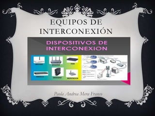 Este documento describe diferentes tipos de equipos de interconexión de redes, incluyendo repetidores, hubs, bridges, switches, routers y gateways. Los repetidores reconstruyen señales para extender la longitud de un segmento de red, mientras que los hubs simplemente retransmiten datos a todos los puertos. Los bridges y switches filtran datos y los envían solo al segmento de destino. Los routers encaminan datos entre redes usando máscaras de subred, y los gateways permiten interconectar redes con protocolos diferentes al desensamblar y reens
