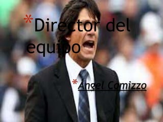 El documento habla sobre los equipos de la universidad. Menciona que el director del equipo es Ángel Comizzo y que los integrantes son estudiantes de la universidad.