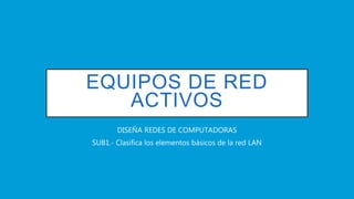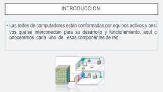 Este documento describe los principales elementos de una red LAN, incluyendo hubs, switches, puntos de acceso y routers. Los hubs simplemente repiten las señales recibidas por todos sus puertos, mientras que los switches envían las señales solo al dispositivo de destino. Los puntos de acceso permiten la conectividad inalámbrica. Los routers conectan distintas redes y envían paquetes de datos entre ellas.