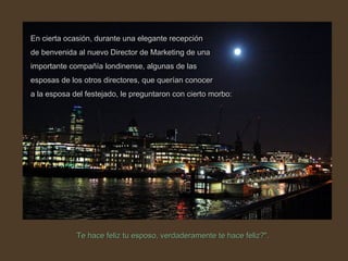 La mujer respondió que su esposo no la hace feliz cuando otras esposas le preguntaron. Explicó que ella es la única responsable de su propia felicidad y que puede decidir ser feliz independientemente de las circunstancias o los cambios en su vida y en los demás. Dijo que a través del amor verdadero y el perdón mutuo, ella y su esposo han enfrentado juntos los cambios en la vida y han podido mantenerse felices a pesar de las dificultades.