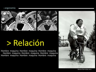 El documento describe varios sistemas de interacción hombre-máquina como cajeros automáticos y máquinas expendedoras de yogurt. Explica cómo los usuarios perciben y actúan sobre estos sistemas, como insertar tarjetas, ingresar claves, seleccionar opciones, extraer dinero u obtener productos. También analiza problemas ergonómicos como la ubicación de botones, tamaño de letras en pantallas, y coherencia entre indicaciones y funciones disponibles.