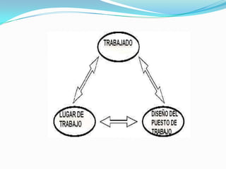 La ergonomía es el estudio del trabajo y su relación con el entorno y los trabajadores, con el objetivo de salvaguardar la seguridad, salud y bienestar de los trabajadores al mismo tiempo que se optimiza la eficiencia. La ergonomía busca adaptar los puestos de trabajo, sistemas, productos y ambientes a las habilidades y limitaciones humanas para prevenir lesiones y enfermedades comunes como las causadas por herramientas vibratorias, posturas forzadas o cargas pesadas. Existen diferentes tipos de ergonomía como