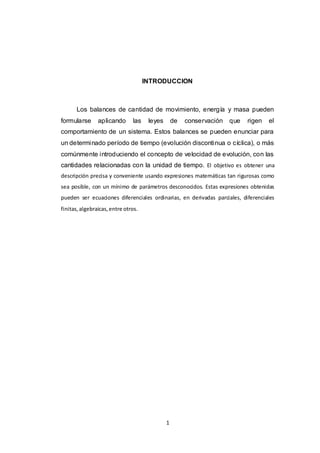 Este documento presenta varios conceptos relacionados con balances de materia y transferencia de materia. Explica el balance de materia aplicado a una envoltura y las condiciones límite asociadas. También describe diferentes tipos de difusión como la difusión a través de una película gaseosa, la difusión con reacción química heterogénea y homogénea, y la transferencia de materia por convección forzada. Finalmente, presenta expresiones semiempíricas para la densidad de flujo turbulento de materia, incluyendo la