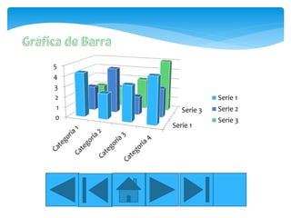 Este documento presenta datos de ventas trimestrales agrupados por categoría y serie. La información se divide en cuatro categorías, cada una con tres series que muestran las ventas en cuatro trimestres.