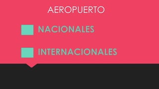 Este documento lista diferentes destinos de viaje populares en el país, incluyendo aeropuertos nacionales, playas en el Pacífico y el Caribe, montañas, y vuelos internacionales a destinos en Europa, Asia y América del Norte y del Sur.