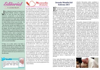 El documento habla sobre los 100 años de las apariciones de Fátima y la celebración de la Jornada Mundial del Enfermo. Incluye partes del secreto de Fátima revelado por Sor Lucía en 1917 que describen una visión apocalíptica. También contiene información sobre eventos y actividades en el convento San Alberto Magno relacionadas con la caridad hacia los damnificados y la enseñanza bíblica.