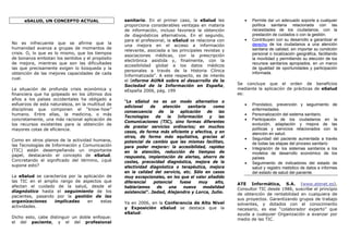 La eSalud aplica las TIC a todos los aspectos del cuidado de la salud, desde el diagnóstico al seguimiento de pacientes. Proporciona ventajas a pacientes y profesionales sanitarios al mejorar el acceso a información y facilitar diagnósticos alternativos. La eSalud permite dar soporte a políticas sanitarias y garantizar el derecho a una atención de calidad independientemente de la ubicación. Los principales beneficios de la eSalud son el pronóstico, prevención y seguimiento de enfermedades.