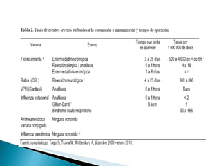El documento resume los conceptos clave relacionados con la vigilancia de eventos adversos supuestamente atribuidos a la vacunación e inmunización (ESAVI). Define ESAVI, describe eventos comunes y raros, y explica la investigación y clasificación de estos eventos. También cubre los tipos de vacunas, sus componentes, y posibles causas de ESAVI como errores operacionales.