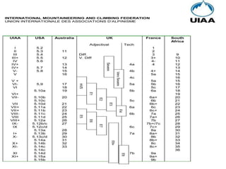 Este documento describe los fundamentos básicos de la escalada. Explica el equipo necesario, las técnicas de seguridad, y los diferentes tipos y estilos de escalada. También cubre nudos importantes, conceptos de aseguramiento, y las técnicas básicas para escalar de manera segura.
