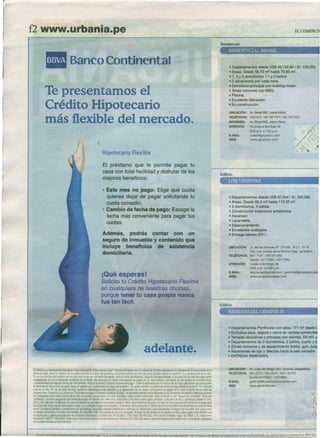 Este documento presenta información sobre varias propiedades inmobiliarias, incluyendo casas, departamentos, locales comerciales, terrenos y propiedades. Se enumeran las diferentes áreas y características de dos condominios en construcción llamados Residencial Brasil y Edificio Los Virreyes, con precios y detalles sobre ubicaciones, acabados, entregas y contacto.