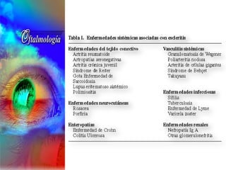 Este documento describe un caso de escleritis difusa anterior en una paciente de 40 años con antecedentes de artritis reumatoidea. Presentaba ojo rojo e intenso dolor ocular izquierdo que no cedía con tratamiento. Tras exploración se diagnosticó escleritis difusa anterior izquierda, para la cual se prescribió tratamiento con antiinflamatorios y corticoides.