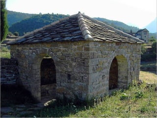 Los esconjuraderos eran pequeñas construcciones medievales típicas de los Pirineos, generalmente cuadradas u ovaladas, que se ubicaban cerca de iglesias e ermitas. Servían para esconjurar o alejar males como tormentas, mal de ojo o pestes mediante oraciones, agua bendita y conjuros dirigidos por el cura. Aunque sus orígenes eran paganos, la Iglesia adoptó la tradición para cristianizarla.