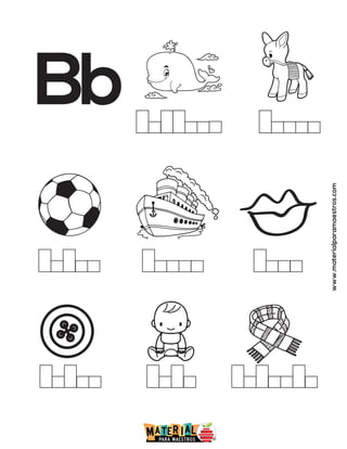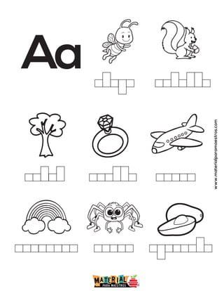 El documento contiene las letras del alfabeto español desde la A hasta la Z, cada una seguida por la dirección web www.materialparamaestros.com.