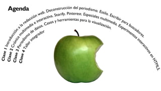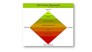 El documento trata sobre la transformación del periodismo en la era digital, destacando la necesidad de adaptarse a un contexto de sobreabundancia de información y atención fragmentada. Se discuten las nuevas habilidades que los periodistas deben desarrollar, como la gestión de comunidades online y la narración multimedia. Además, se enfatiza la importancia de crear contenido conciso y atractivo, utilizando hiperenlaces y adaptando el estilo de escritura a las características de la web.