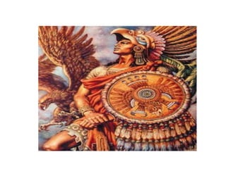 Según la leyenda, el dios Huitzilopochtli guió a los mexicas desde Aztlán hasta una isleta donde encontraron un nopal con un águila sosteniendo una serpiente, lo que representa la lucha entre el bien y el mal. En ese lugar fundaron la ciudad de Tenochtitlan, que más tarde se convertiría en la Ciudad de México. El escudo actual de México se basa en este símbolo que representa los orígenes míticos del pueblo mexicano.