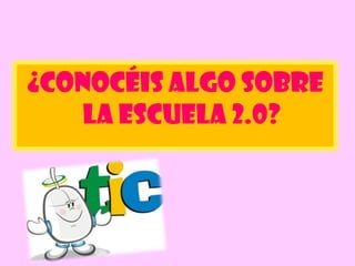 El documento describe el programa Escuela 2.0, cuyo objetivo principal es transformar las aulas tradicionales en aulas digitales del siglo XXI mediante la integración de las TIC y un cambio en la forma de enseñar, aprender y evaluar. La Escuela 2.0 se basa en principios como la comunicación, la colaboración, la confianza y el compartir de información a través de herramientas web 2.0 como blogs, wikis, redes sociales y Google Apps. El documento también explica algunos ejemplos de implementación de la Esc