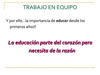 El documento discute los diferentes modelos educativos de los padres y la importancia de fomentar la autonomía en los niños desde una edad temprana. Se describen cuatro modelos - represivo, sobreprotector, permisivo y fortalecedor - y se argumenta que el modelo fortalecedor es el más efectivo al establecer límites claros mientras permite flexibilidad y favorece la adquisición gradual de autonomía. También enfatiza la necesidad de enseñar a los niños tareas diarias en lugar de hacerlas por ellos para promover