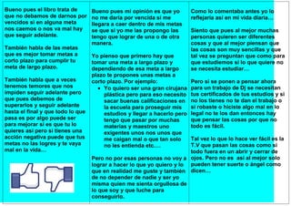 El documento habla sobre la importancia de no darse por vencido ante las metas y continuar esforzándose a pesar de los tropiezos. También recomienda establecer metas a corto plazo para alcanzar las metas a largo plazo. Además, menciona que a veces los temores nos impiden seguir adelante, pero debemos superarlos para alcanzar nuestros objetivos.