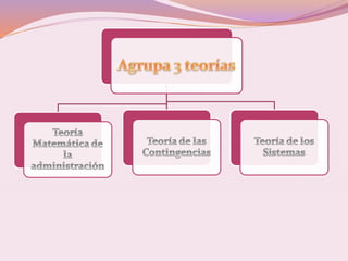 La teoría general de sistemas fue desarrollada por el biólogo austriaco Ludwig Von Bertalanffy y ve a las organizaciones como sistemas complejos compuestos por partes interrelacionadas. La teoría conceptualiza a las organizaciones como sistemas abiertos que intercambian recursos con el ambiente externo y busca desarrollar reglas generales aplicables a cualquier sistema.
