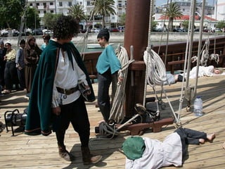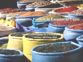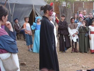 Este documento describe varios proyectos escolares que recrearon aspectos de la vida cotidiana en el siglo XVI a través de dramatizaciones históricas. Los proyectos incluyeron escenas de una feria con personajes como mendigos y prostitutas, la recreación de una farmacia y consultorio médico de la época, y la representación de la vida a bordo de un barco del siglo XV. El objetivo general era promover el conocimiento cultural y científico a través de la comprensión de la realidad histórica.