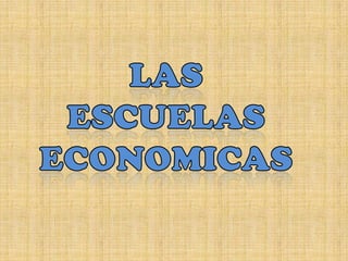 Este documento presenta un resumen de las principales escuelas de pensamiento económico, incluyendo la Escuela Mercantilista, la Escuela Fisiocrática, la Escuela Clásica, la Escuela Marxista, la Escuela Neoclásica, la Escuela Keynesiana y el Estructuralismo. Describe sus características fundamentales, principios y representantes más importantes.