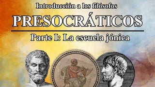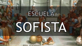 Este documento resume las características de varias escuelas de filosofía griega antiguas como la Escuela de Mileto, la pitagórica, la eleática, los sofistas y Sócrates. La Escuela de Mileto se centró en un material base para todos los demás, como el agua para Tales de Mileto. Los pitagóricos creían que los números explicaban todo. La escuela eleática sostenía que el mundo es una unidad ilusoria. Los sofistas enfatizaron la verdad relativa y la moral subjetiva. Sócrates usó la