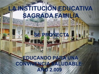 El documento destaca los esfuerzos de la Institución Educativa Sagrada Familia para promover una educación y convivencia saludables entre sus estudiantes y la comunidad. A través de diversas actividades artísticas, recreativas y estrategias democráticas, se busca fomentar el desarrollo integral y el fortalecimiento de valores en los niños y niñas. El texto culmina con una reflexión sobre la importancia del amor y el tiempo en la construcción de relaciones y el bienestar personal y social.