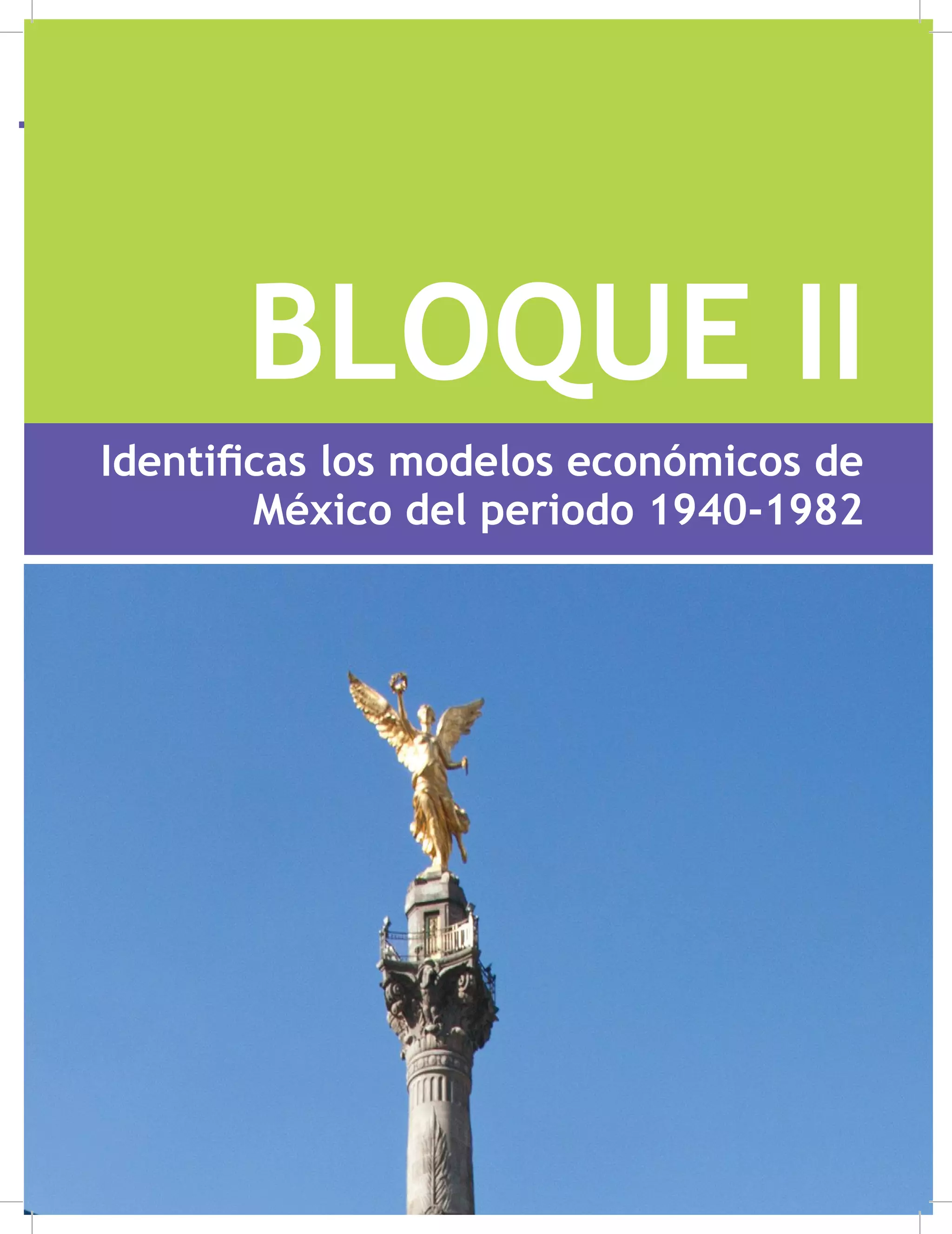 Este documento describe los objetivos de aprendizaje y productos esperados para un bloque que identifica los modelos económicos de México entre 1940 y 1982. Se analizarán tres modelos económicos implementados durante este período: sustitución de importaciones (1940-1954), desarrollo estabilizador (1954-1970) y desarrollo compartido (1970-1982). También se examinarán las condiciones sociales, el sistema de partido único y los movimientos sociales. Los estudiantes crearán líneas de tiempo, mapas conceptuales, ensayos