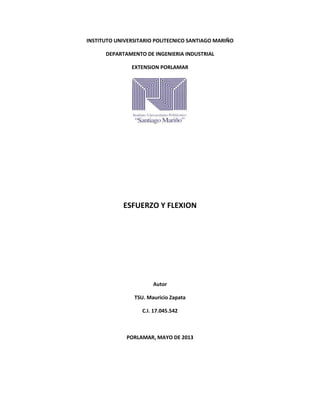 Este documento introduce los conceptos de esfuerzo, deformación, flexión, torsión y corte. Define esfuerzo como la fuerza por unidad de área y explica cómo se relaciona con la resistencia de los materiales. Describe diagramas esfuerzo-deformación y sus elementos clave para materiales dúctiles y frágiles. Explica los diferentes tipos de solicitaciones mecánicas como flexión, torsión, corte, flexión compuesta y flexo-torsión a través de ejemplos teóricos y prácticos.