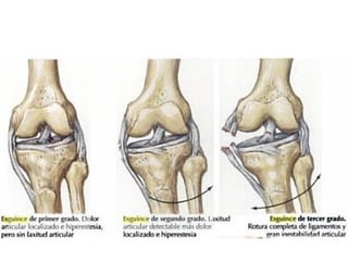 El documento describe un esguince cervical. Un esguince cervical es una lesión de los tejidos blandos del cuello causada por una aceleración o desaceleración brusca que puede ocurrir en accidentes automovilísticos u otros impactos. Puede causar dolor, rigidez e irritación de los nervios en el cuello. El diagnóstico se basa en la historia clínica y el examen físico. El tratamiento incluye analgésicos, terapia física y ejercicios para la movilidad del cuello.