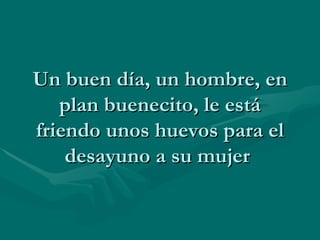La mujer entra gritando en la cocina mientras su marido fríe huevos, diciéndole repetidamente que tenga cuidado y cambie la forma en que los está cocinando. El intercambia se vuelve tenso con más gritos e insultos de la mujer hacia su marido. El marido responde enfadado preguntando qué le pasa, a lo que la mujer contesta que solo intenta mostrarle lo que siente cuando él conduce.