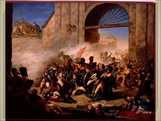 El documento describe la crisis del Antiguo Régimen en España a principios del siglo XIX. Tras la invasión francesa en 1808, España experimentó una guerra de independencia contra Napoleón y una revolución liberal que dio lugar a la primera Constitución española de 1812 promulgada en las Cortes de Cádiz.