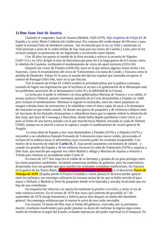 El documento presenta información sobre varias personas, hechos históricos y estructuras de gobierno en España entre los siglos XVII y XVIII. Incluye detalles sobre figuras como Don Juan José de Austria y su rol como valido del rey Carlos II, así como sobre la creación de instituciones como la Junta General de Comercio bajo su mandato para impulsar la economía. También presenta breves descripciones de otros sucesos y reformas administrativas durante ese periodo.