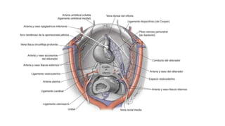 El espacio pelvisubperitoneal superior se encuentra entre las fascias transversales anterior y posterior. Está delimitado anteriormente por el tabique vesicovaginal y lateralmente por el aparato de sostén pélvico.