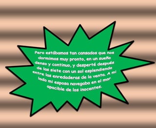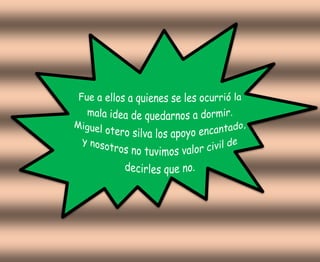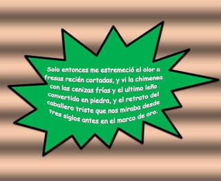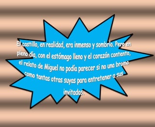 El documento describe la visita de un grupo a un castillo en la Toscana. Miguel Otero Silva les cuenta la historia de Ludovico, el antiguo señor del castillo que apuñaló a su amante en la cama. A pesar de la leyenda de que el fantasma de Ludovico deambula por la noche, los visitantes duermen bien en el castillo modernizado.