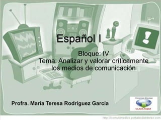 El documento presenta una serie de actividades para analizar y valorar críticamente los medios de comunicación. Los estudiantes diseñarán y aplicarán una encuesta para conocer cómo ven la televisión y escuchan la radio las personas de su comunidad, analizarán los resultados en Excel y presentarán sus hallazgos en PowerPoint.