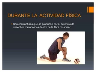 Los calambres musculares son contracciones involuntarias y dolorosas que afectan a los músculos, particularmente en situaciones de esfuerzo intenso o calor extremo. Se producen principalmente por mala postura, fatiga, o deficiencias nutricionales, y el tratamiento implica estiramiento, masaje, y en ocasiones medicamentos. Es recomendable consultar a un profesional si los calambres son severos, persistentes, o recurrentes.