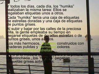 Cristóbal era un humiks que recibía muchos puntos grises de los otros humiks por sus fallas y torpezas. Esto lo hacía sentirse mal consigo mismo. Un día conoció a Sofía, una humiks que no tenía puntos ni estrellas porque estas no se pegaban en su madera. Sofía le dijo que fuera a ver a Elí, el artesano que los creó. Cuando Cristóbal visitó a Elí, este le dijo que era especial para él porque lo había creado y que no cometía errores, y que no debía preocuparse por lo que pensaran