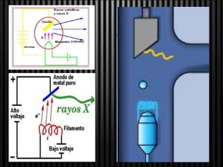 El documento describe el espectro electromagnético, incluyendo las diferentes formas de radiación electromagnética como las ondas de radio, microondas, infrarrojas, luz visible, ultravioleta, rayos X y rayos gamma. Explica sus características como la longitud de onda y la frecuencia, así como sus aplicaciones principales como la comunicación, calentamiento de alimentos, visión, fotografía y medicina.