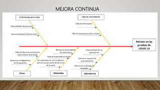 El Diagrama de Ishikawa o Diagrama de Espina de Pescado ayuda a identificar las causas raíces de un problema analizando todos los factores involucrados en el proceso, incluyendo personas, materiales, equipos y medio ambiente. Creado por Kaoru Ishikawa en los 1960, el diagrama reduce la posibilidad de omitir detalles al considerar todos los aspectos que podrían haber causado el problema. Se usa también para identificar causas potenciales de problemas de rendimiento y servir de base para debates de grupo sobre las posibles causas