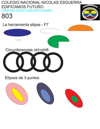 Este documento proporciona instrucciones sobre el uso de varias herramientas de dibujo en un programa como elipses, circunferencias, poligonos, espirales y estrellas.