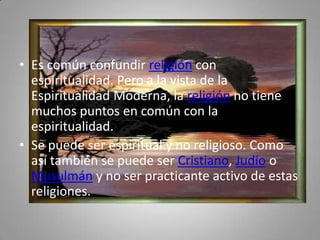 La espiritualidad actual es una nueva forma de abordar y aplicar las religiones monoteístas como el cristianismo, judaísmo y budismo en la vida cotidiana. Se puede ser espiritual sin ser religioso, viviendo una vida dedicada al servicio de los demás. El despertar espiritual implica un equilibrio entre la mente, emociones y cuerpo, así como tomar lo mejor de todas las religiones para enfrentar la vida con optimismo.