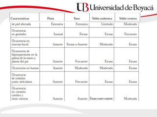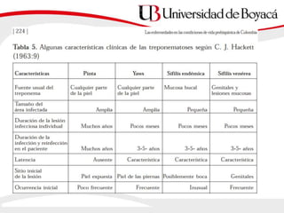 2) La sífilis es causada por Treponema pallidum e incluye etapas primarias, secundarias y latentes así como complicaciones tardías. Se transmite principalmente por contacto sexual.