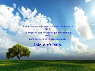 Este documento contiene una colección de citas y reflexiones sobre temas como la amistad, el amor, la felicidad interior, la adversidad y la esperanza. Alienta al lector a disfrutar de la vida y a mantener la esperanza incluso en los momentos difíciles, ya que la felicidad proviene de nuestro interior más que de factores externos y la adversidad es temporal.